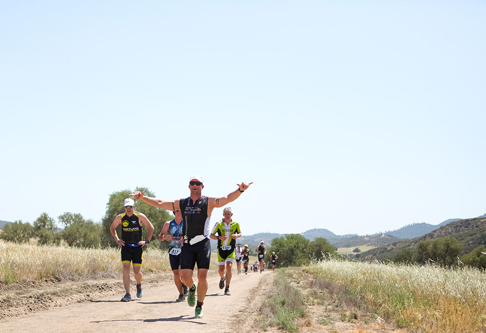 The Wildflower Long Course Triathlon is an iconic event in the sport. Many triathletes proclaim it to be the best triathlon in the United States. Since 1983 the event has hosted most of the biggest names in the sport. It starts with a 1.2 mile swim in the lake at 65-68 F. The bike course is a 56 mile ride through the hills, valleys, and fields of wildflowers. The rolling hills are hard on your legs and when you get to “Nasty Grade” (mile 40) makes them burn even more. The downhills will give you white knuckles until you get back to the park and the transition area. The run is 13.1 miles along the lake, creek and through the backcountry of Long Valley. It returns through the Redonda Vista and Lupine Meadows campgrounds. On San Antonio Dr. runners proceed down to the “Pit” (mile 10) then turn-around and head back to Lynch Road for the last leg wobbling downhill to the finish line. The weather plays a big part of the strategy as it is unpredictable from year to year.
